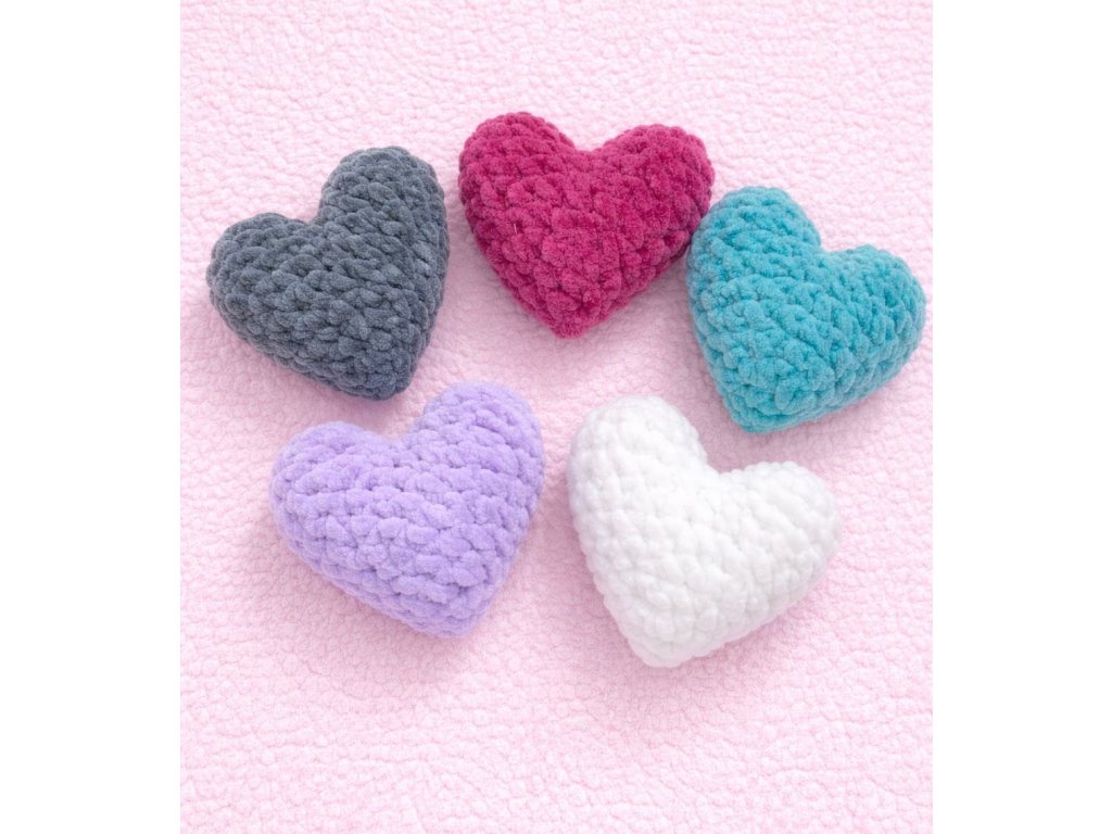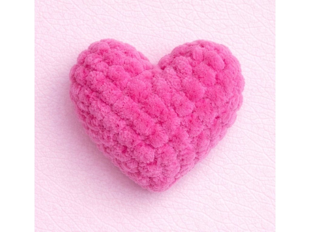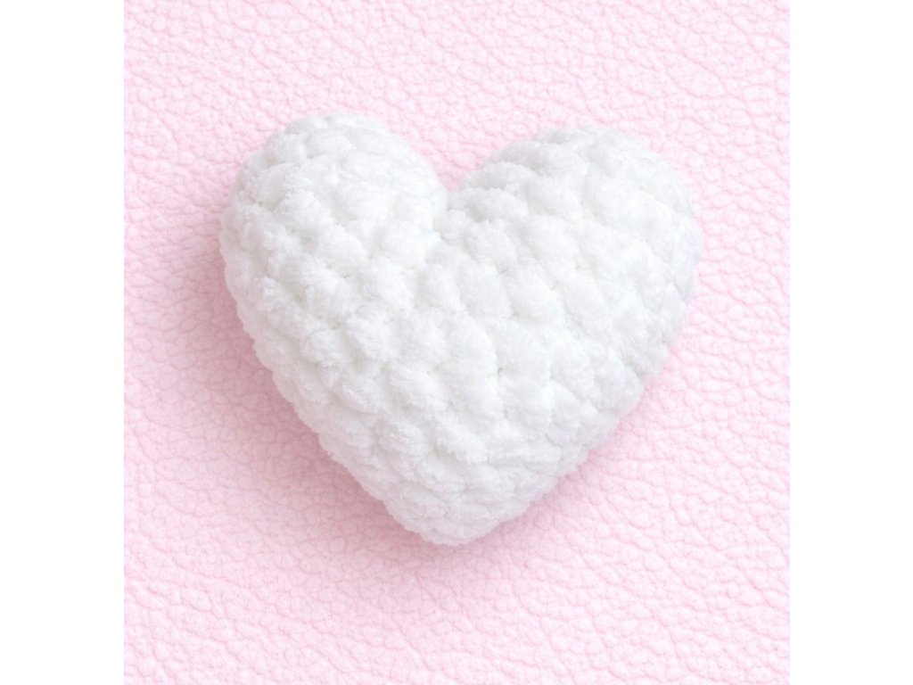 Heboučké háčkované srdíčko z jemné plyšové příze – krásná dekorace i milý dárek pro radost.