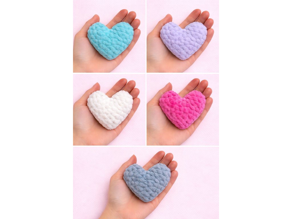 Ručně háčkované plyšové srdíčko je vyrobené z velmi jemné a měkké žinylkové příze, která je příjemná na dotek. Díky své hebkosti působí luxusně a zároveň útulně. Srdíčko je pečlivě vyplněné, drží tvar a hodí se jako dekorace do dětského pokoje, ložnice, kočárku nebo jako drobný dárek z lásky.