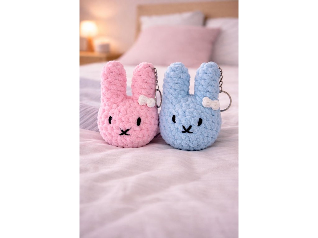 Heboučcí králíčci v jemných pastelových barvách jsou ideálním doplňkem na klíče, kabelku nebo batoh. Díky praktickému kroužku je můžeš mít vždy u sebe – jako malý talisman pro radost 💕