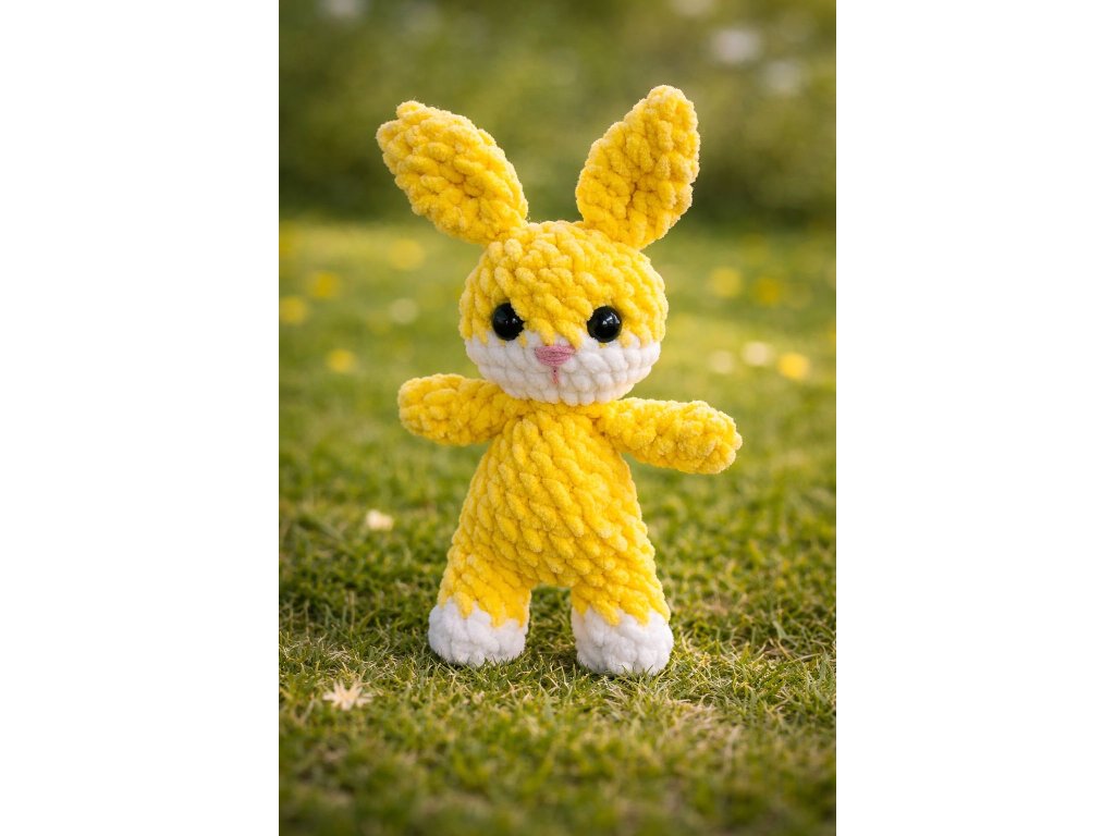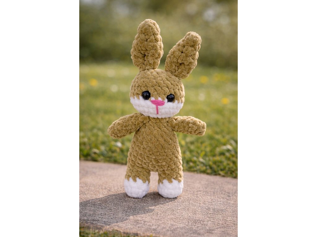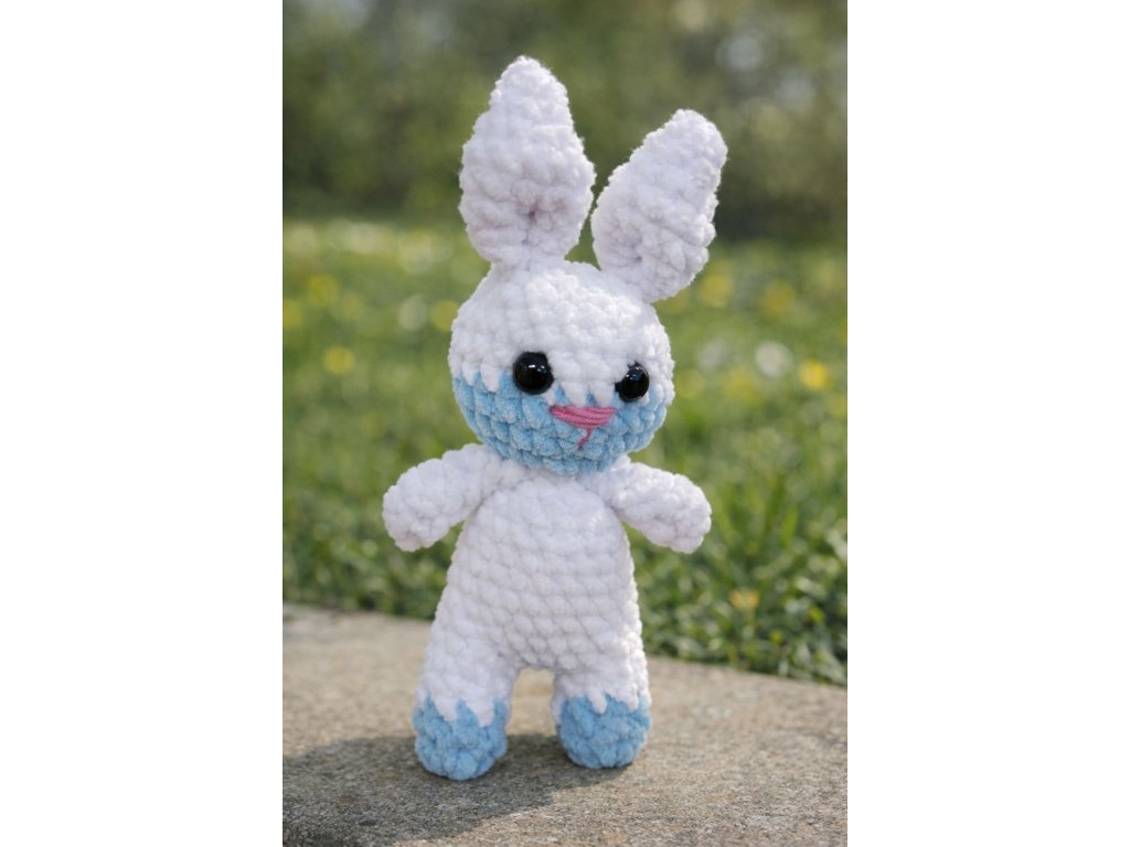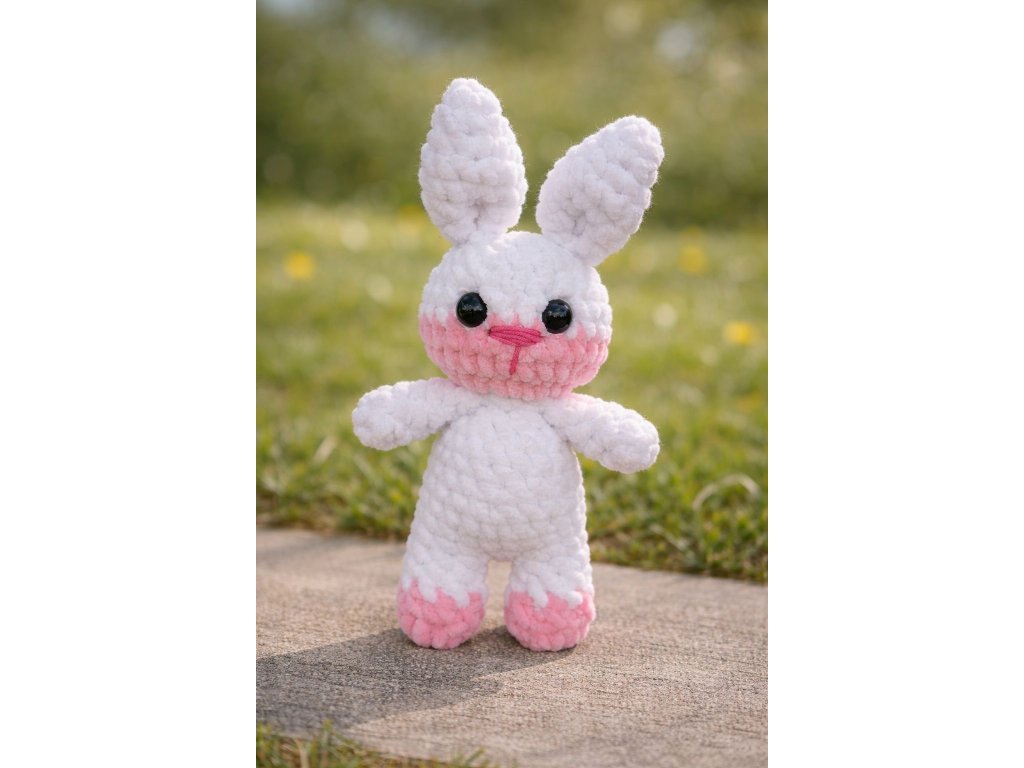 Tento ručně háčkovaný zajíček je vyroben z jemné a velmi hebké žinylkové příze, která je příjemná na dotek a ideální na mazlení. Díky svému roztomilému designu, dlouhým ouškům a milému úsměvu si získá srdce dětí i dospělých na první pohled.