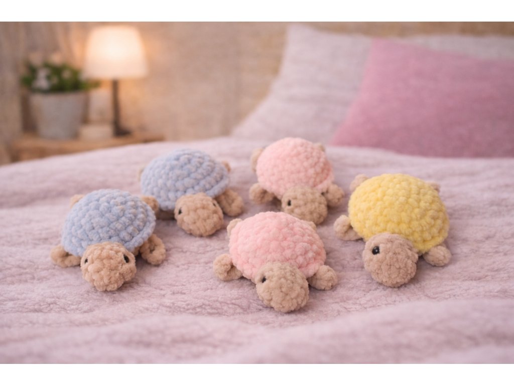 Každý kus je pečlivě vyrobený s láskou k detailu, takže každá želva je jedinečná a originální. Barevné varianty jsou pestré – modrá, růžová, fialová, zelená, žlutá, šedá, červená a další na domluvu, takže si můžete vybrat přesně podle svého vkusu.